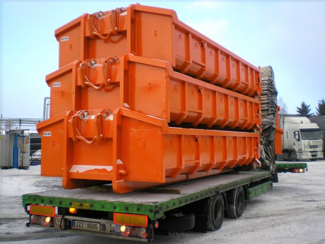 Kontajnery sú určené pre prepravu sutiny, zeminy a iných materiálov. Pomocou hákového nosiča možno kontajnery ľahko stohovať a prepravovať viac kontajnerov spoločne. Sú vybavené sklopnou priecestnou rampou, ktorá je odpružená 2 silnými pružinami.