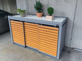 Velikost přístřešku se odvíjí od velikosti popelnice – k dostání jsou přístřešky na popelnice o objemu 120 l i 240 l, s 2-4 komorami.