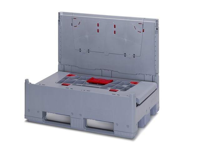 Veľký objem skladacích boxov šetrí čas a peniaze pri preprave, manipulácii a skladovaní . Vďaka možnému zmenšeniu objemu prázdnych boxov znižujú náklady pri spiatočnej doprave. Výhodou je nízka hmotnosť prázdneho boxu, úspora priestoru pri manipulácii s prázdnymi boxami a ľahké čistenie. Sklopná verzia má navyše bočné klapky umožňujúce ľahké plnenie a vyprázdňovanie. K dispozícii s nožičkami, lyžinami alebo kolieskami.