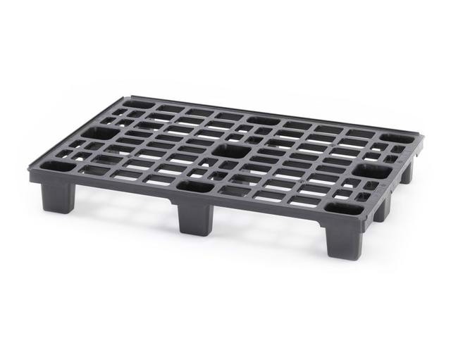 Plastové palety s nožičkami, v šedom prevedení.
